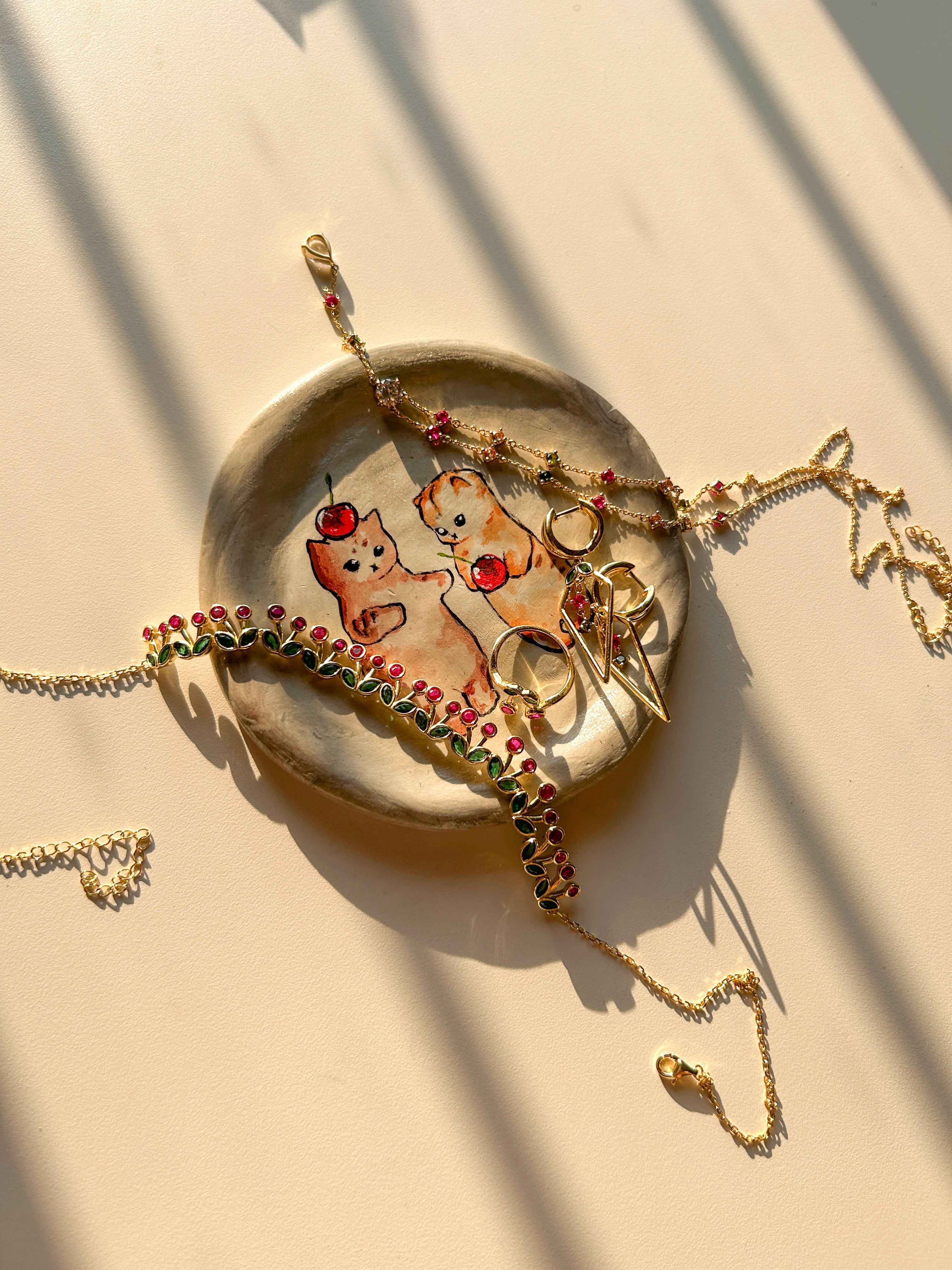 Cherry Colorful Gemstone Lariat Necklace Cherry Bombshell Jewelry Set Colletion
