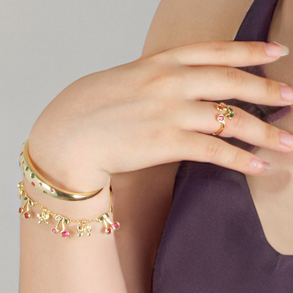 Cherry Gemstone Flush Open Bracelet Cherry Bombshell Jewelry Set Collection