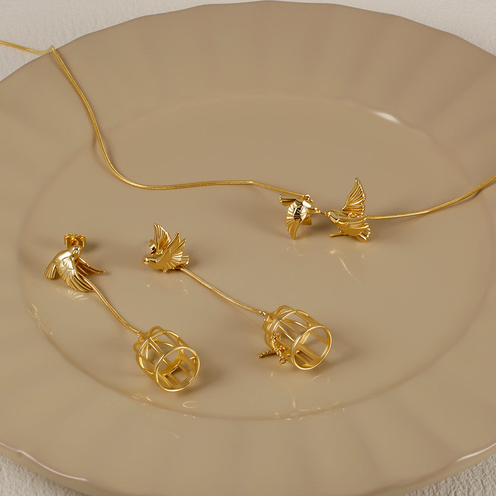 Journey to You Freedom Gold Bird Soar Pendant Necklace Love Birds Jewelry Set