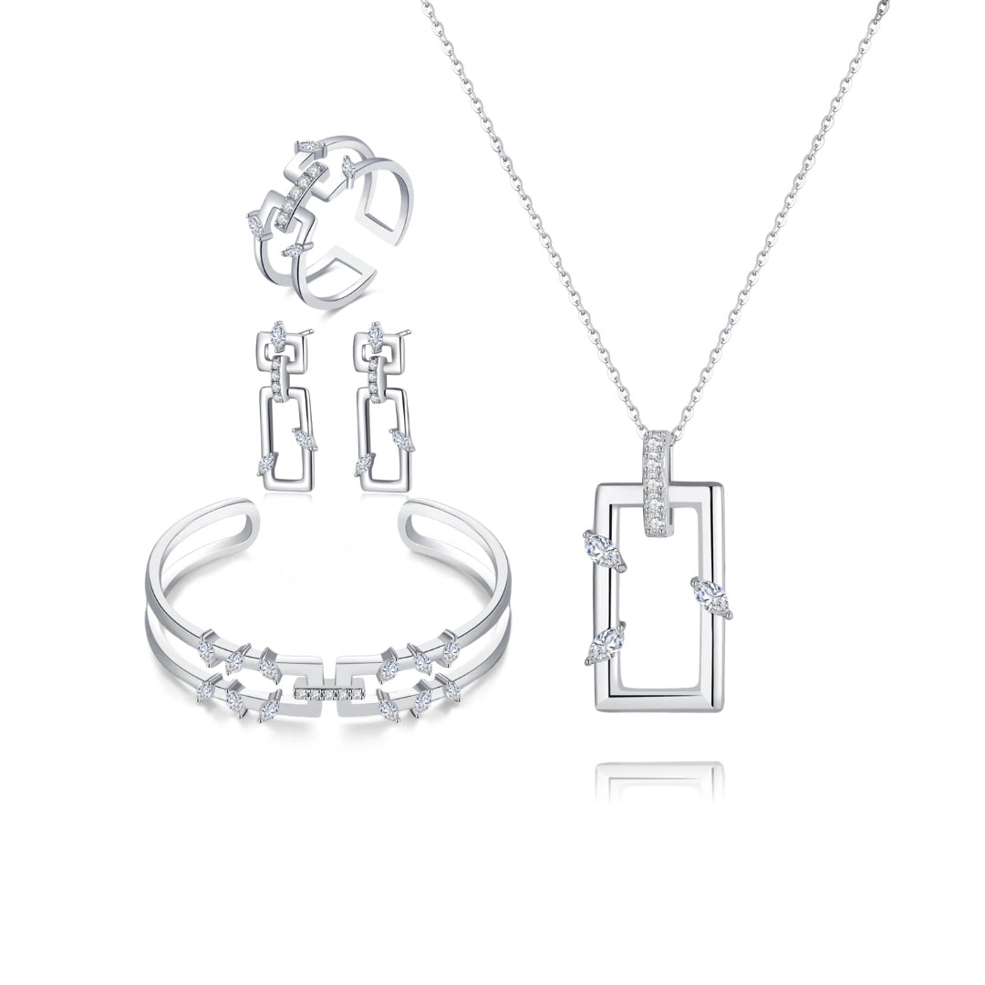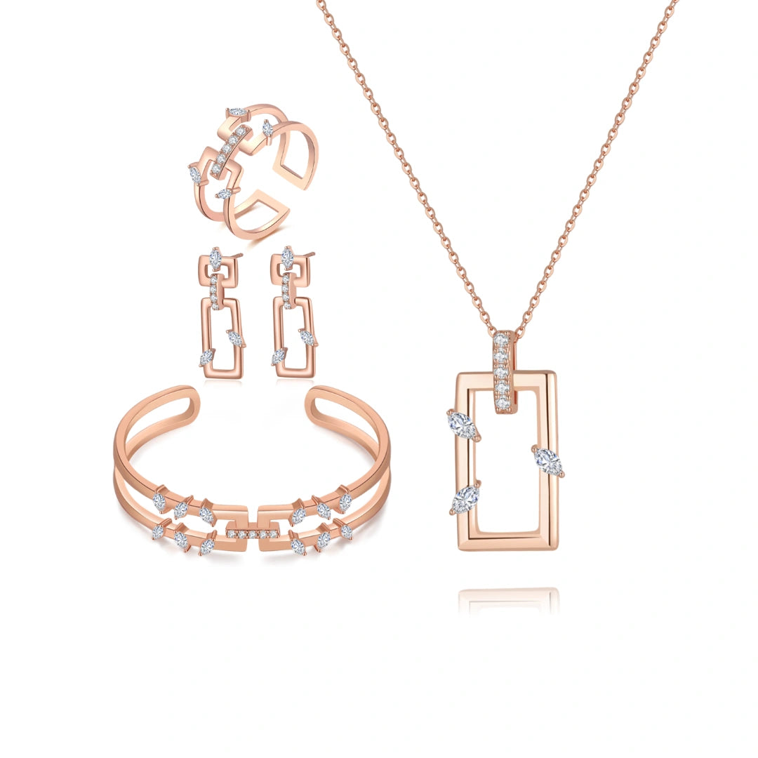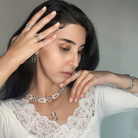 Imagínate en la brisa fresca soplando entre un ramo de jazmines... ¡Qué agradables son el olor y la suave caricia de la brisa sobre tu piel y cabello! Esta colección de joyería está diseñada para asociar este sentimiento con la joyería cada vez que la usas. El conjunto está inspirado en las flores de jazmín que crecen en primavera con un aroma encantador que te llega con la brisa que fluye.