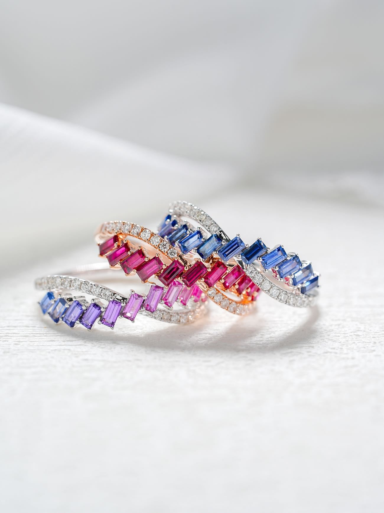 18K Gold Crosshatch Gradient Baguette Ring