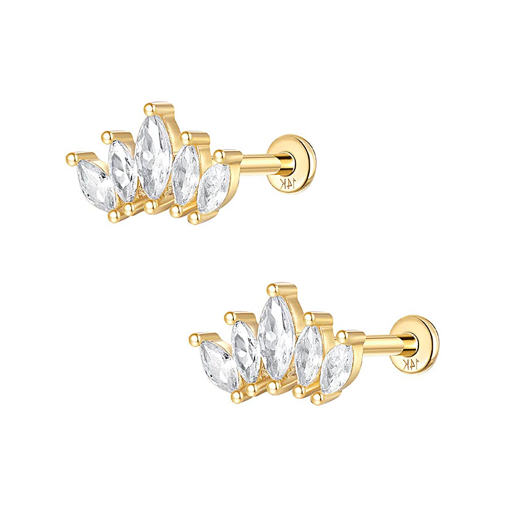 14k Gold Symmetrical Rectangular Gold Flat Back Earrings
