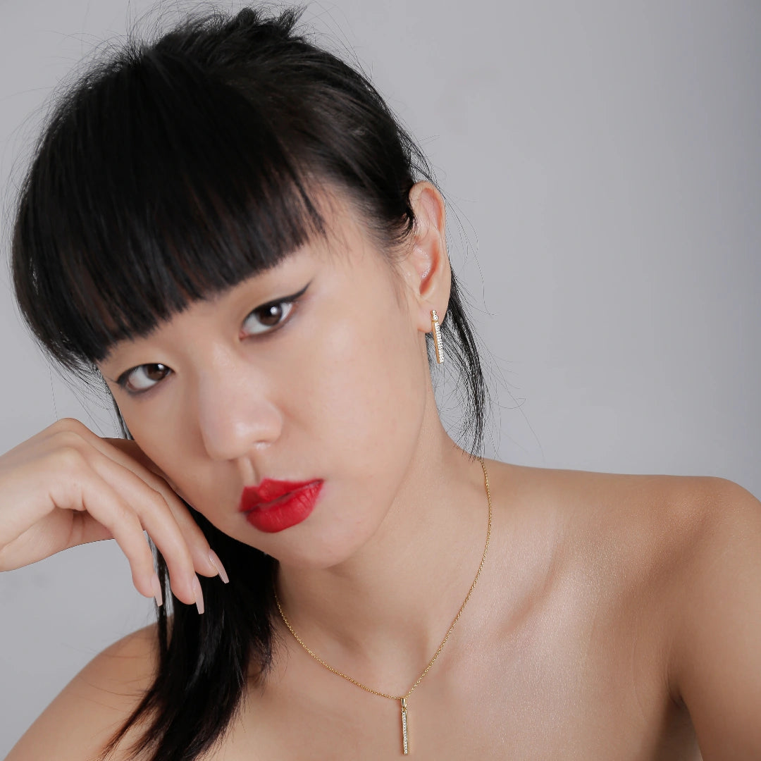 Pendientes colgantes con barra vertical Colección Galaxy de Parastoo Behzad