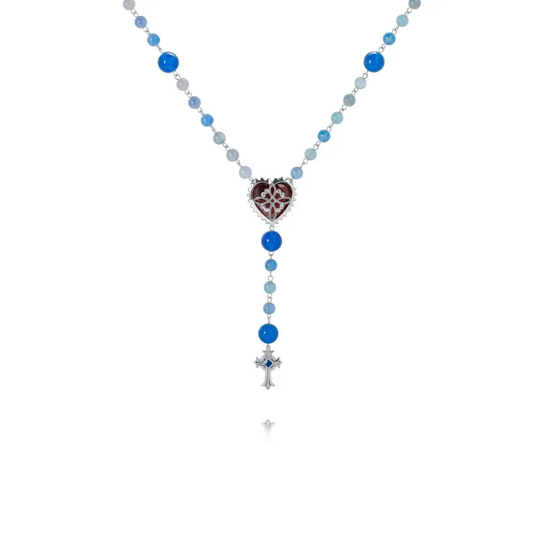 925 Silver Enamel Five-Leaf Flower Necklace Brooch Two-Wear